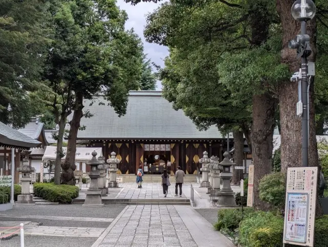 神社の鳥居をくぐると、まっすぐ伸びる参道の先に、凛としたたたずまいの御社殿が見えてきます。