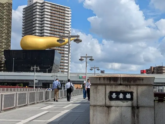 アサヒグループ本社の特徴的なモニュメントを横目に見ながら、目の前の我妻橋を渡ります。