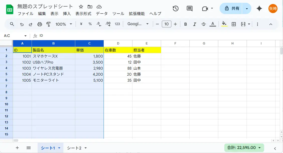 しかし、徐々にスプレッドシートの仕様みたいなものが掴めるはずです。