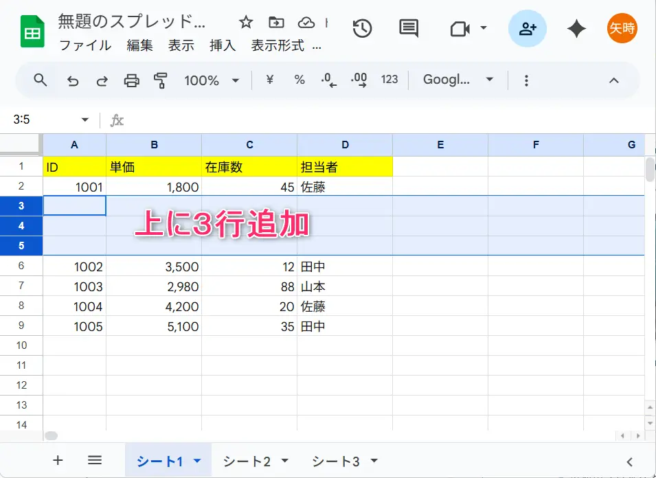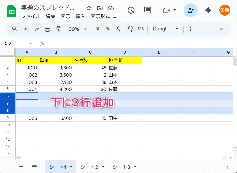 スプレッドシートの行を増やす基本操作